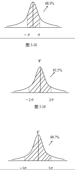 如图5-18阴影部分所示,以平均值X为中心,数据在X±σ范围出现概率为68.3%。