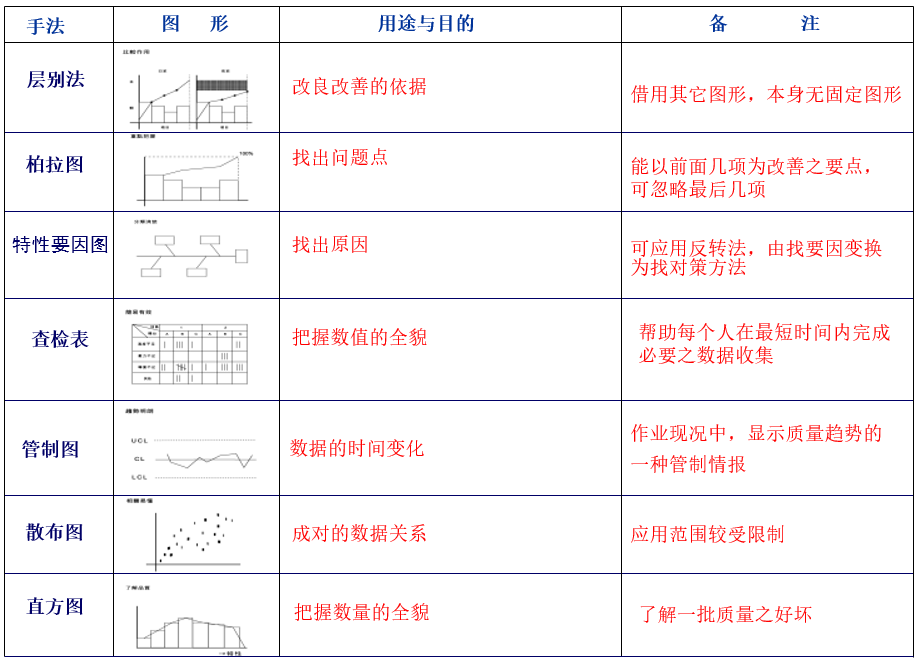 表2-16 QC七大手法内容