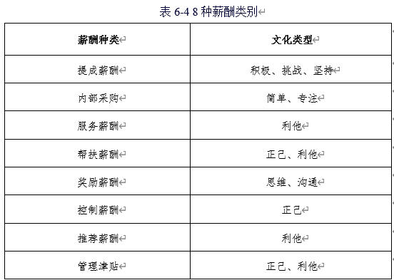 文化的真正标准不在于形式,而在于其实质内容。最有效率的员工,其文化匹配度往往是最高的。企业在构建薪酬体系时,通常会设计多种薪酬类别。每种薪酬类别都反映了特定的文化内涵。因此,可以说薪酬越高,文化标准也相应越好。员工的文化标准应与企业的平均规划薪酬标准相匹配。如表6-4所示。