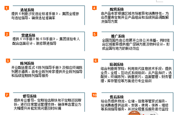 “‘会员制连锁专卖’模式是挺好的,但是要有专业的招商支持体系,有了支持体系我们才能保证开一家店成功一家店,这样,代理商才会有信心跟着我们干!”利豪家具某高层在项目组内部讨论会上表示,表达了对招商支持体系的高度期望。