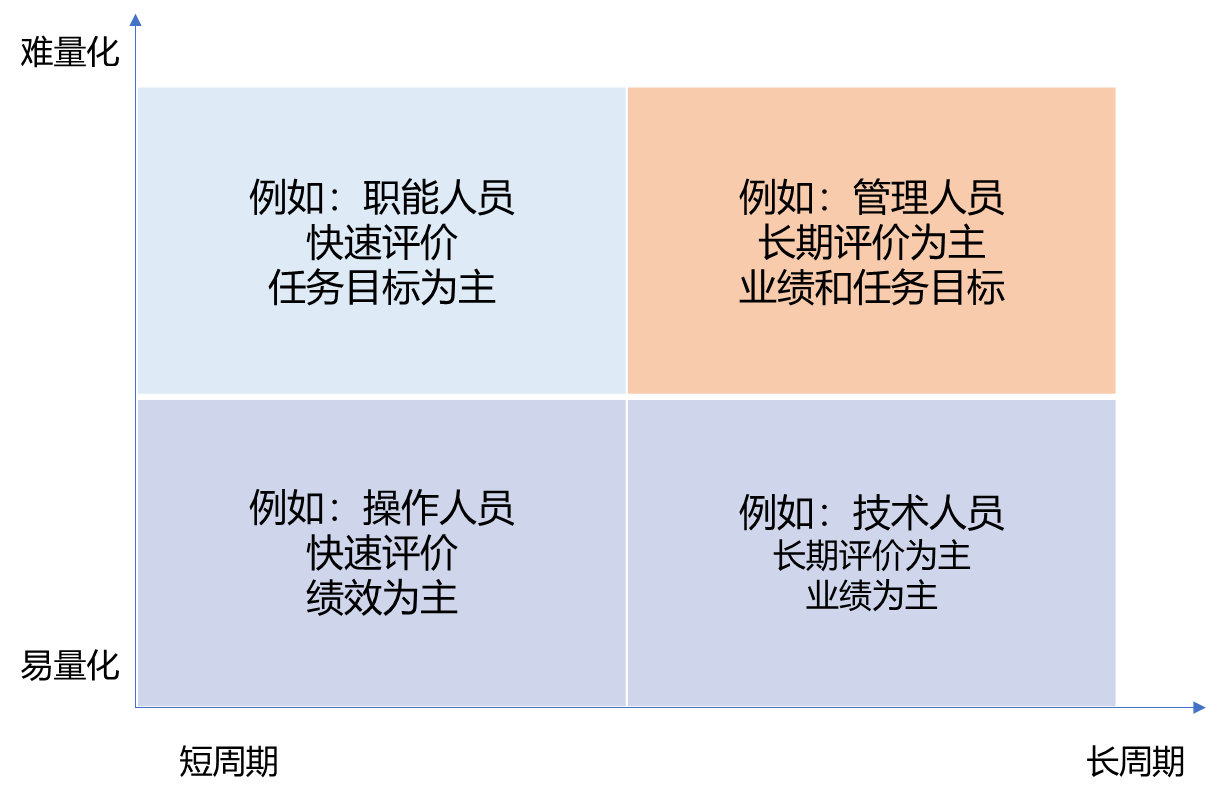例如《华为人力资源管理纲要2.0》提出:“针对专家类人才创造价值的长期性与不确定性特点,建立长短期贡献相结合、能上能下的任期评估机制;针对职员了人才创造价值的稳定性和确定性特点,建立以责任心和经验积累为重心的任期评估机制,以及与工作量和质量相关的评价激励机制。”