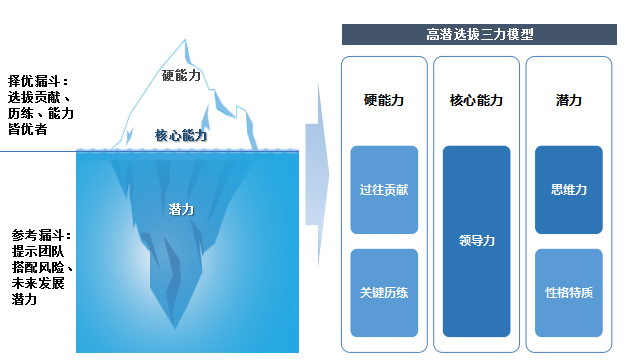 本次项目整合了倍智人才评估的3C/R模型,以“三力”出发进行高潜继任人选的选拔。如图7-19所示。