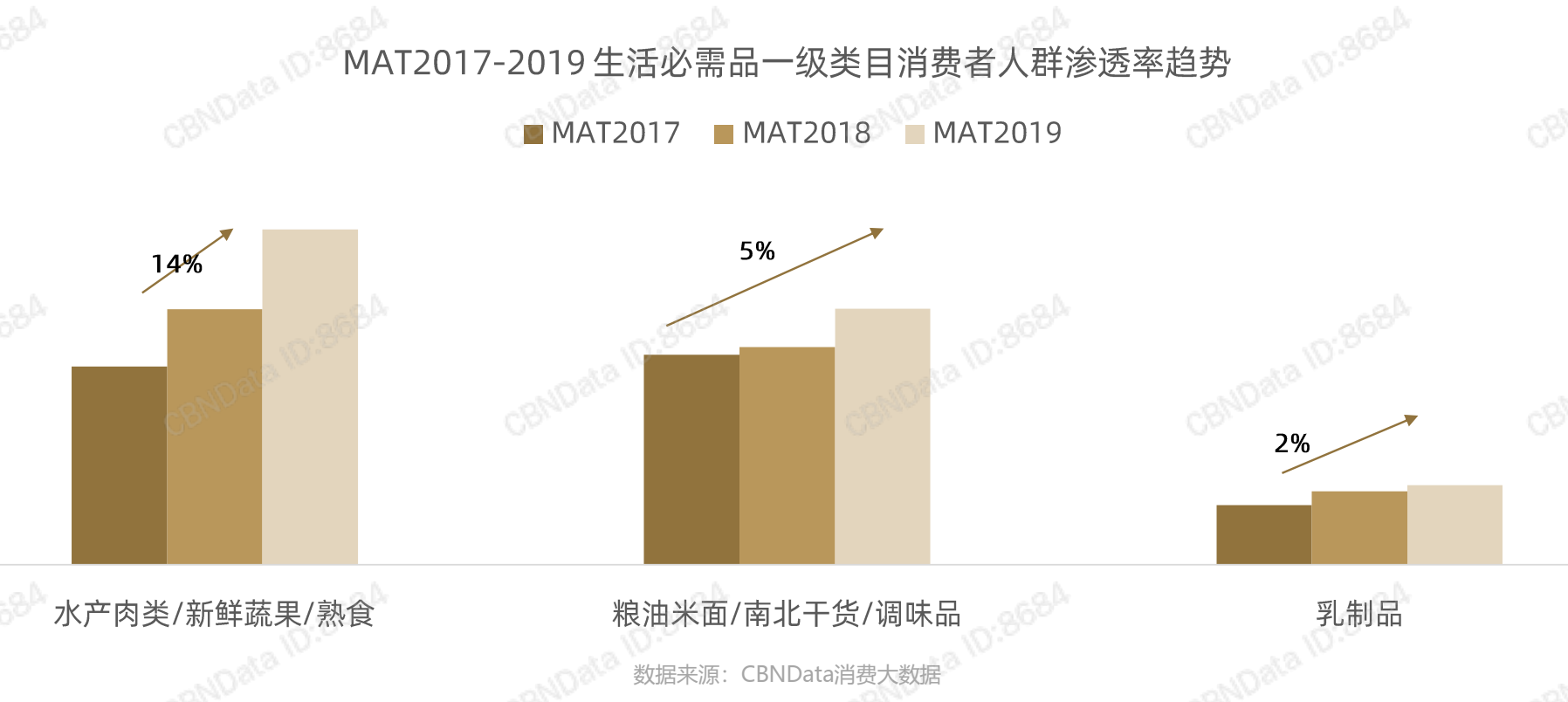 图2-15 2017—2019年生活必需品一级类目消费人群渗透率