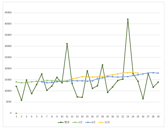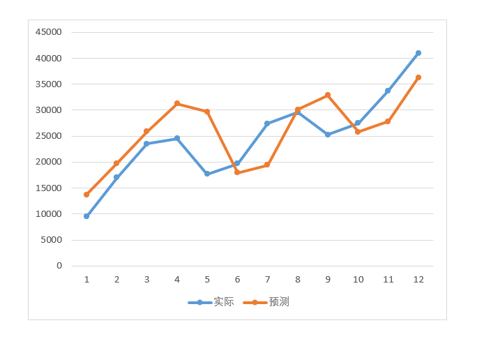 通过数据规律,每年的12月到次年的1月,需求有一定的下滑出现,那么预测出来的值也含有雷同的规律。