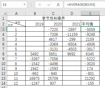 得出2021年6月的趋势是-433,那么后续的就以这个最新的趋势进行类推,2021年7月就是第一期的-433,即-433 * 1= -433 ,假如要推测2022年1月的,类推就是7期的数据,即-433 * 7= -3031