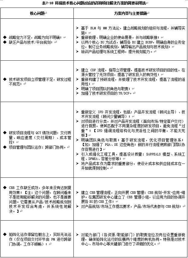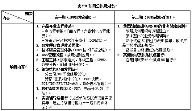 表7-11 IPD研发咨询项目实施计划表