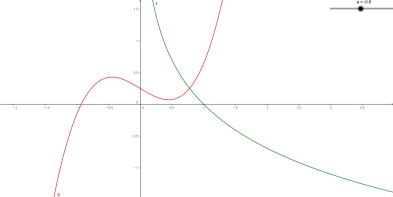 在第一象限一定有一个交点,且位于x轴的上方,而