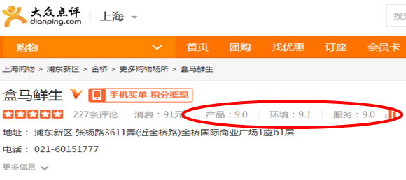 图3-5 盒马鲜生在大众点评的评价