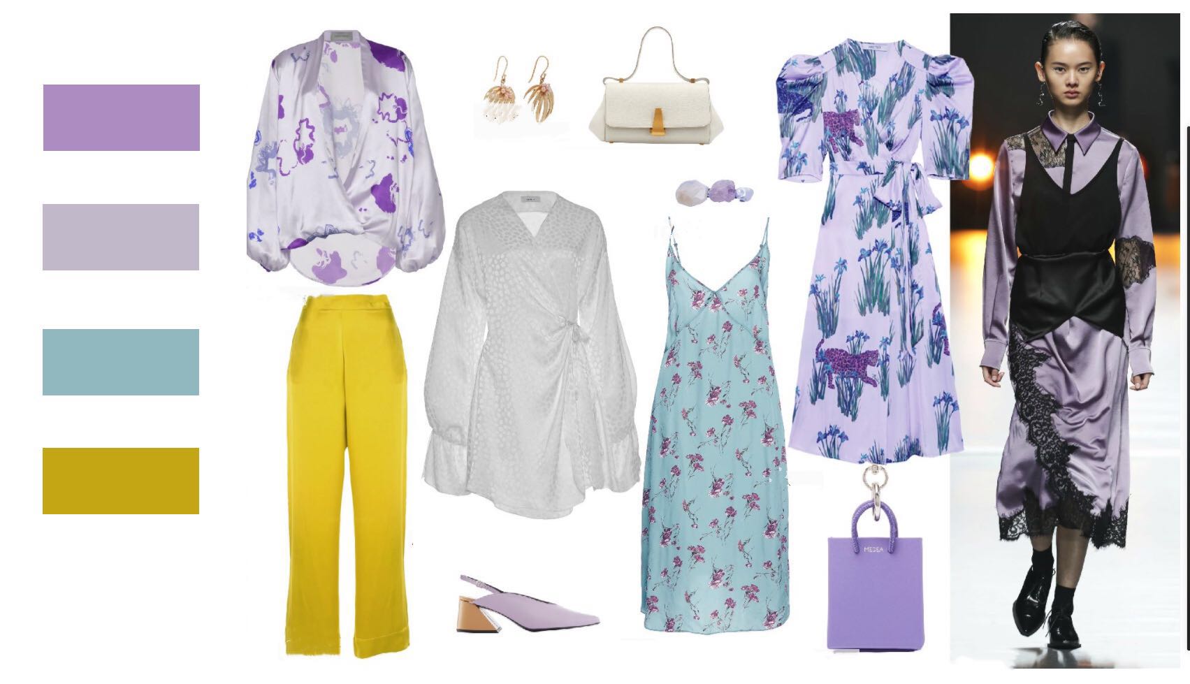浪漫优雅的货品基调:紫色被称为优雅和浪漫的之色,同时又是光波最短的颜色,在自然界中比较少见的颜色,因此紫色又被看作是稀有高贵的颜色。淡紫色的浪漫不同于粉色甜美式的浪漫,是带有高贵神秘之感。而深紫色则是魅力十足,带有难以探测的华丽之感。如图8-27所示。