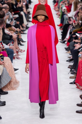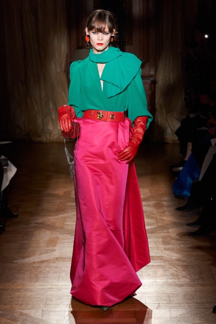 增加或者降低一种颜色的明度或者纯度,或者同时改变两个颜色的明度或者纯度,达到和谐统一的视觉效果。如图8-21所示,深红色大衣与墨绿袜子搭配,同时降低了红色和绿色的纯度,达到和谐统一的视觉效果。