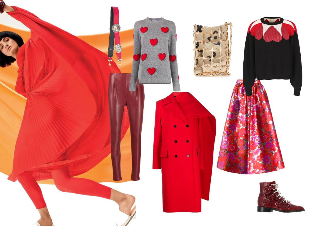 喜悦喜庆的货品基调:在每季的货品组合里都少不了红色的身影,并且买手通常需要在圣诞节、春节、情人节等特定的节日推出额外特定的红色系列。红色在传统中是富贵吉祥的颜色,代表着喜悦、热情、甜蜜与爱情。同时,红色又是富有攻击力的色彩,喜欢红色的人往往是性格乐观开朗、精力旺盛的行动派。买手在组合节日货品时,可以尝试用红色与金色相配。如图8-23,华丽的金色与喜庆的红色相互衬托,配合其他无彩色系,呈现出喜悦吉祥的货品基调。