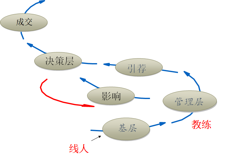 通过线人获得客户内部的信息,再通过他引荐与客户中教练见面那是最理想的。所谓教练,是客户中不满意现有供应商或被忽略,或是新的供应商可以为其带来好处的人或者部门,他们处于业主的中高层,可以提供行动建议,对决策者有影响力,教练也可以是有影响力的设计师或设计院。教练提供的信息质量比线人要高,因为他们能参加一些高级别的会议,所以能提供有效和独特的信息。
