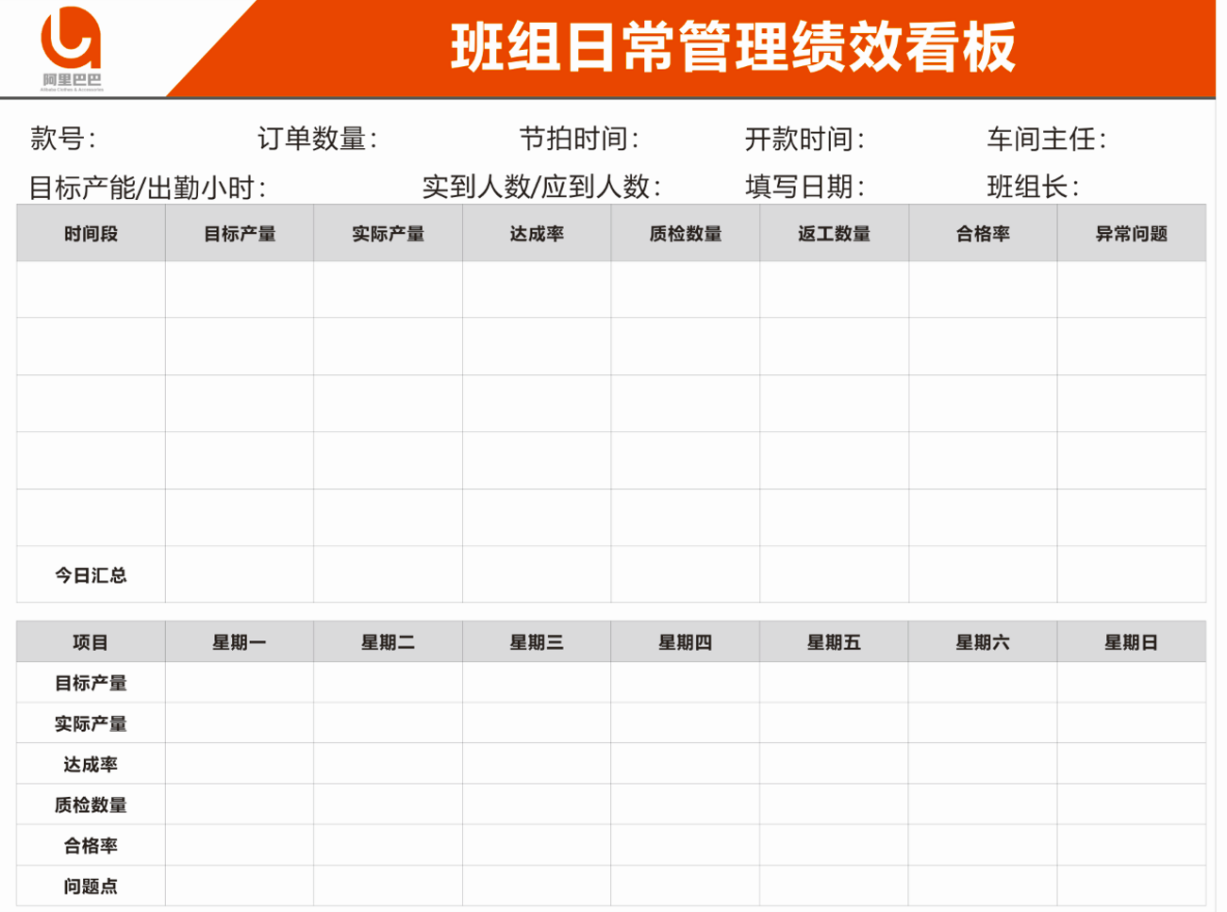 生产线需要围绕着安全、品质、效率、成本、交期、5S和士气等七个维度的管理,进行KPI指标体系的设计,并且将这些KPI指标体系的表单组合成表单看板放置于现场,让大家可以随时看到我们的管理动态。
