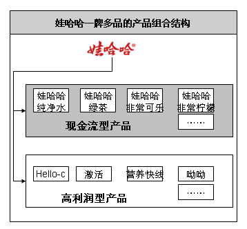 娃哈哈产品以大众化、现金流型产品为主,不断增加高利润型产品,采取的是广泛分销、大广告助销的推拉结合营销手法。