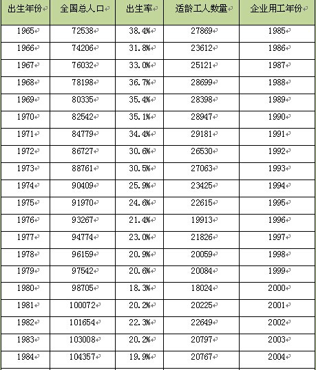 表1-1 全国人口出生率及适龄工人数对照表