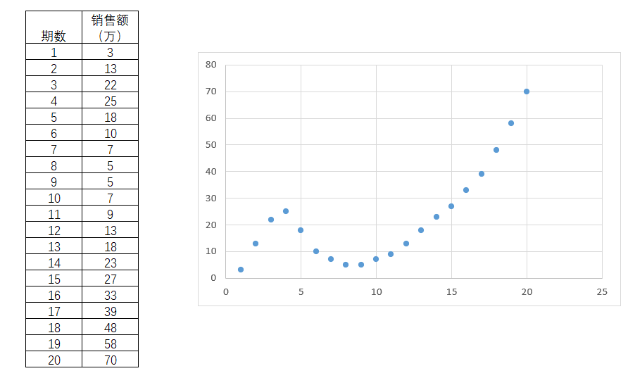 如某商品的销售情况如下,呈现非常明显的曲线状态。