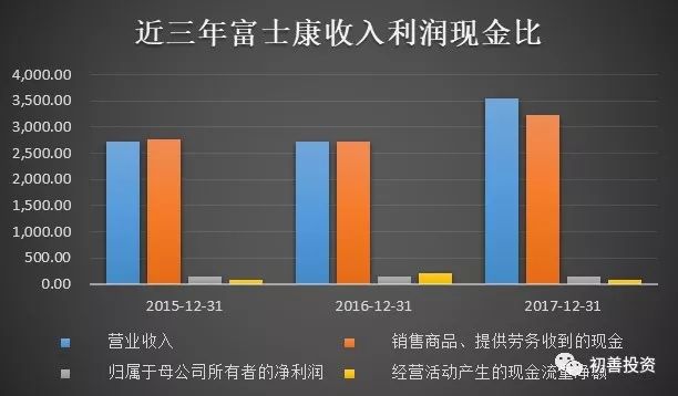 近三年来,富士康的营业收入分别为2,728亿元、2,727.13 亿元和3,545.44亿元人民币,2016和2017年的同比增长分别为-0.03%和30.01%,不太稳定。而归母净利润则是143.50 亿元、143.66 亿元和158.68亿元,2016和2017年同比增长是0.11%和10.46%。