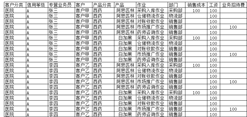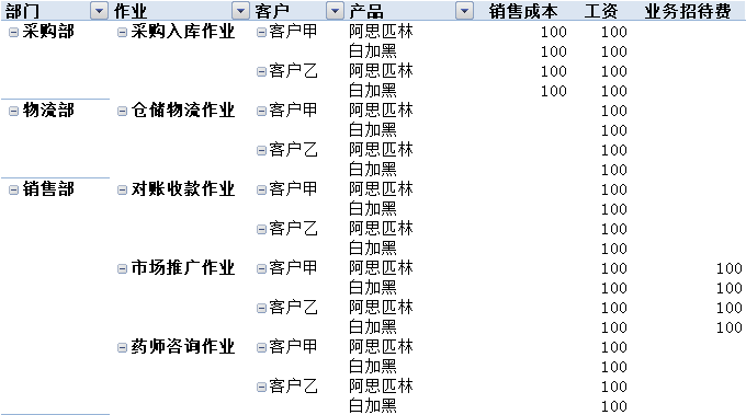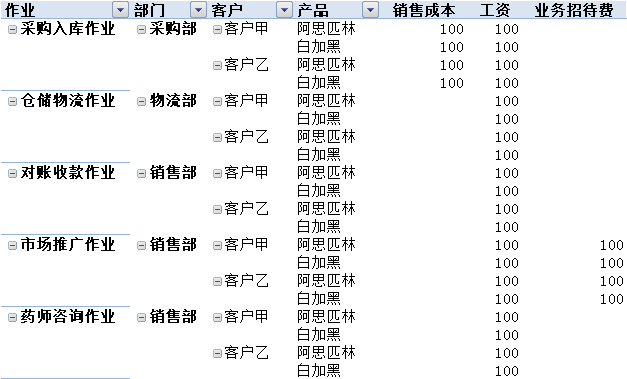 可查询部门与作业、客户、产品的任意组合的成本。