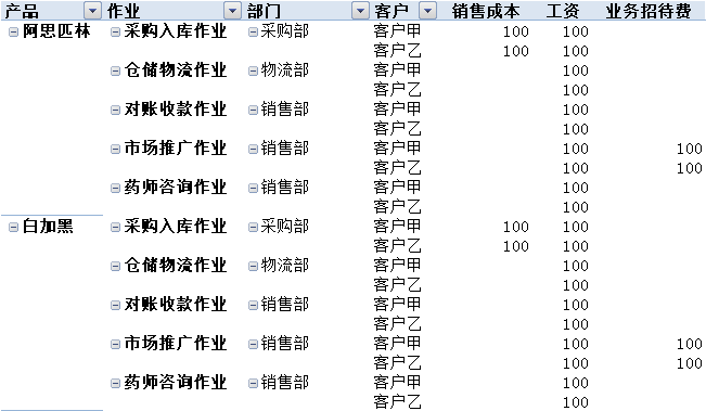 可查询产品与客户、部门、作业的任意组合的成本。