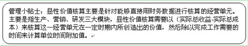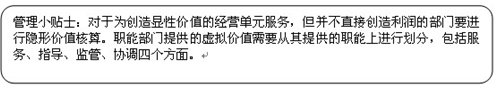 对于那些为创造显性价值的部门或经营单元服务,但并不直接创造利润的部门要使用隐形价值核算。适用隐性价值核算的部门包括三类: