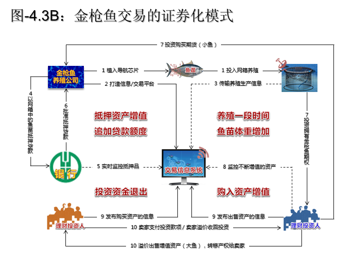 显然,这个方案解决了信息对称的难题,如果连银行都可以接受的话,那么直接投资者就更不成问题了。于是我在这个思路的基础上策划出了把金枪鱼做成理财产品的商业模式: